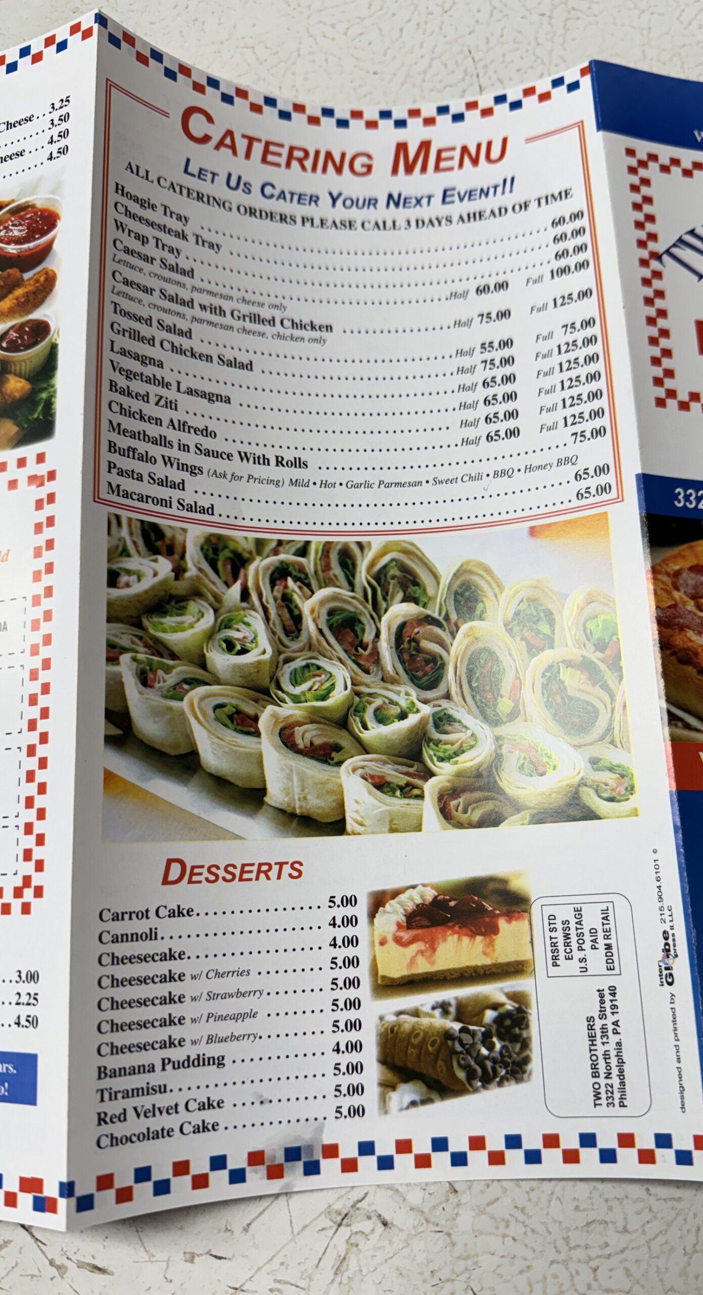 Full Menu Order with Us (215) 225-1052 Order Now Contact (215) 225-1052 info@twobrospizzeria.com FollowFollow Operating Hours Mon – Thur: 11am to 9:30pmFri & Sat: 11am to 10:30pmSun: Closed